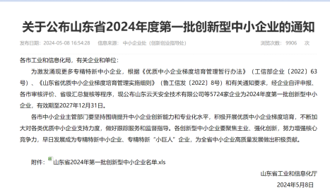 近日,山东省工业和信息化厅公布了山东省2024年度第一批创新型中小企业名单,山东齐安检测技术有限公司荣登榜单。